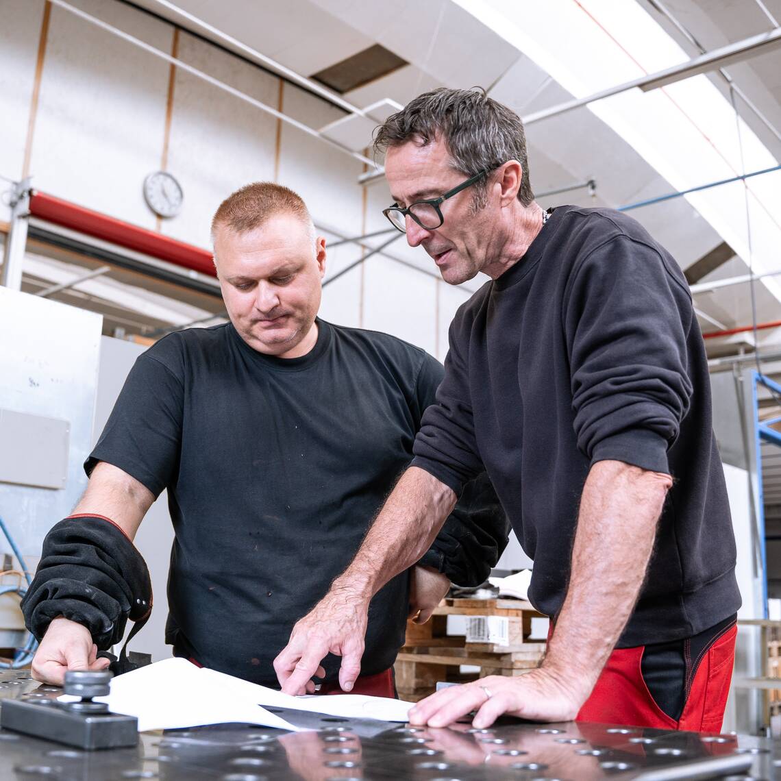 Unseren Mitarbeitenden in der Produktion und Mon-tage stellen wir funktionale und hochwertige Arbeits-kleidung zur Verfügung.