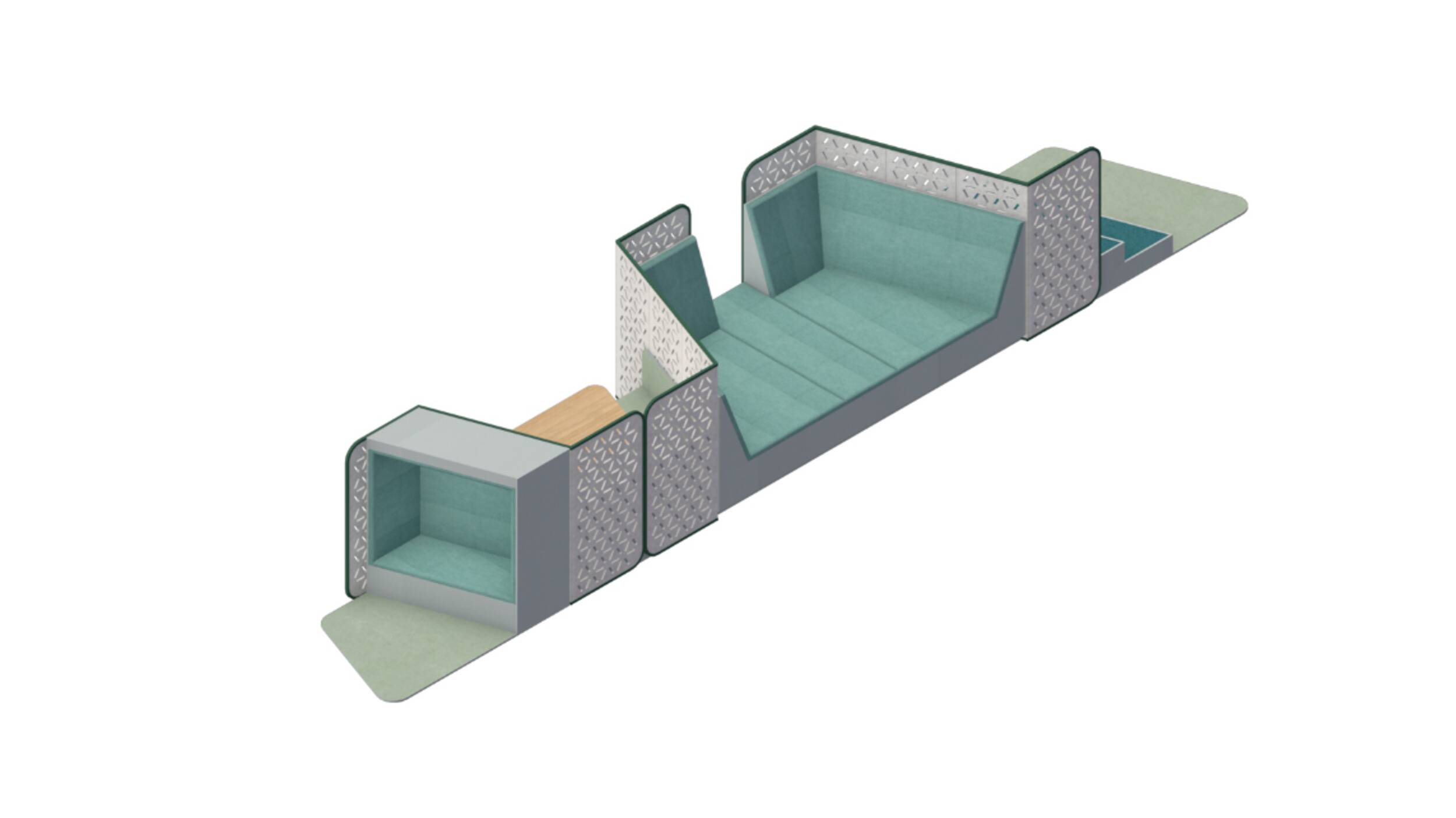 Konzipiert für Gangzonen, fügt sich die LERNINSEL auch in offenen räumlichen Settings spielend ein. Die Wandelemente grenzen die einzelnen Module und Aufenthaltszonen voneinander ab, was wiederum eine grosse räumliche Vielfalt auf geringer Fläche ermöglicht.