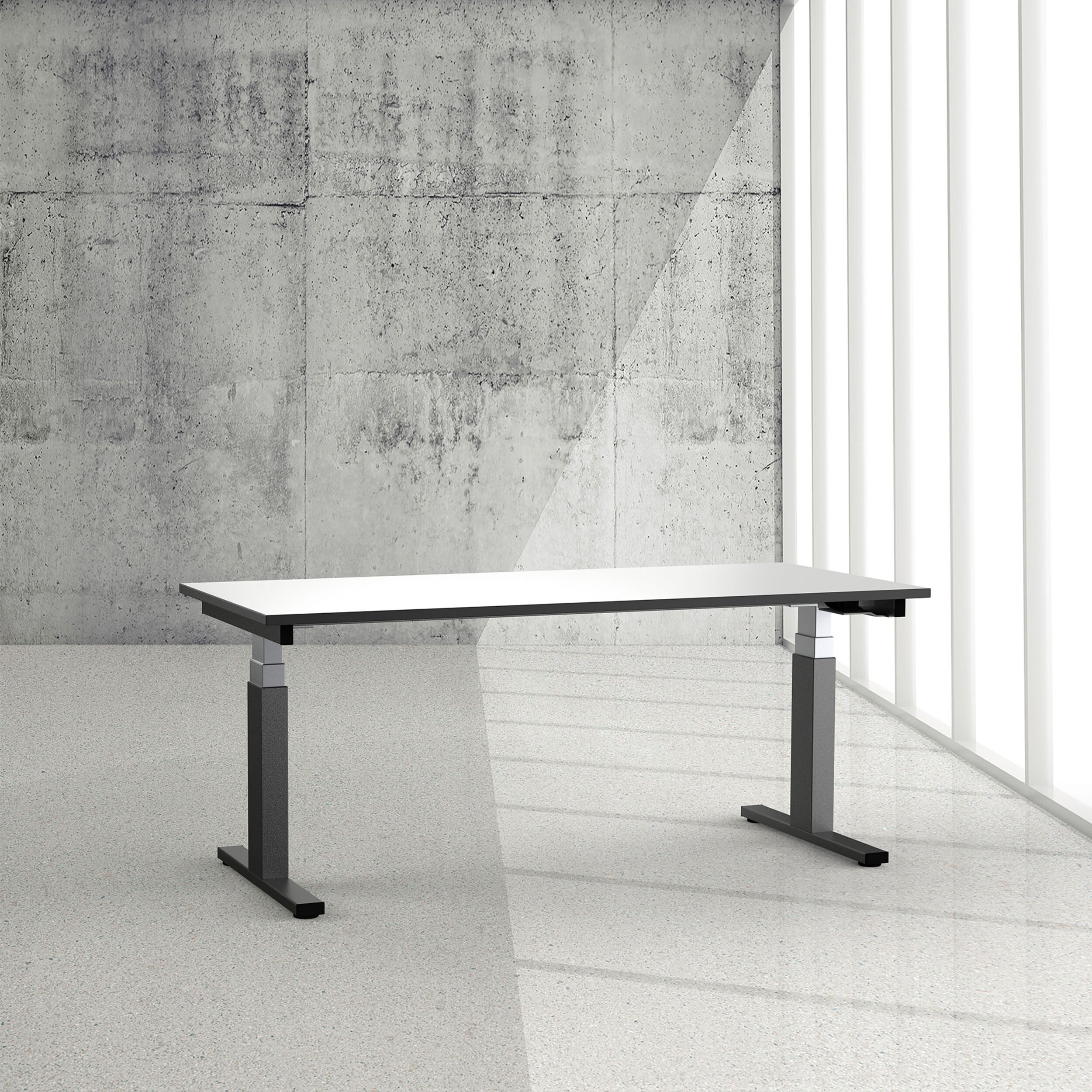 Die Tischkonstruktion besteht aus absolut verwindungs-steifem Präzisionsstahlrohr. Innensäule in Chromoptik