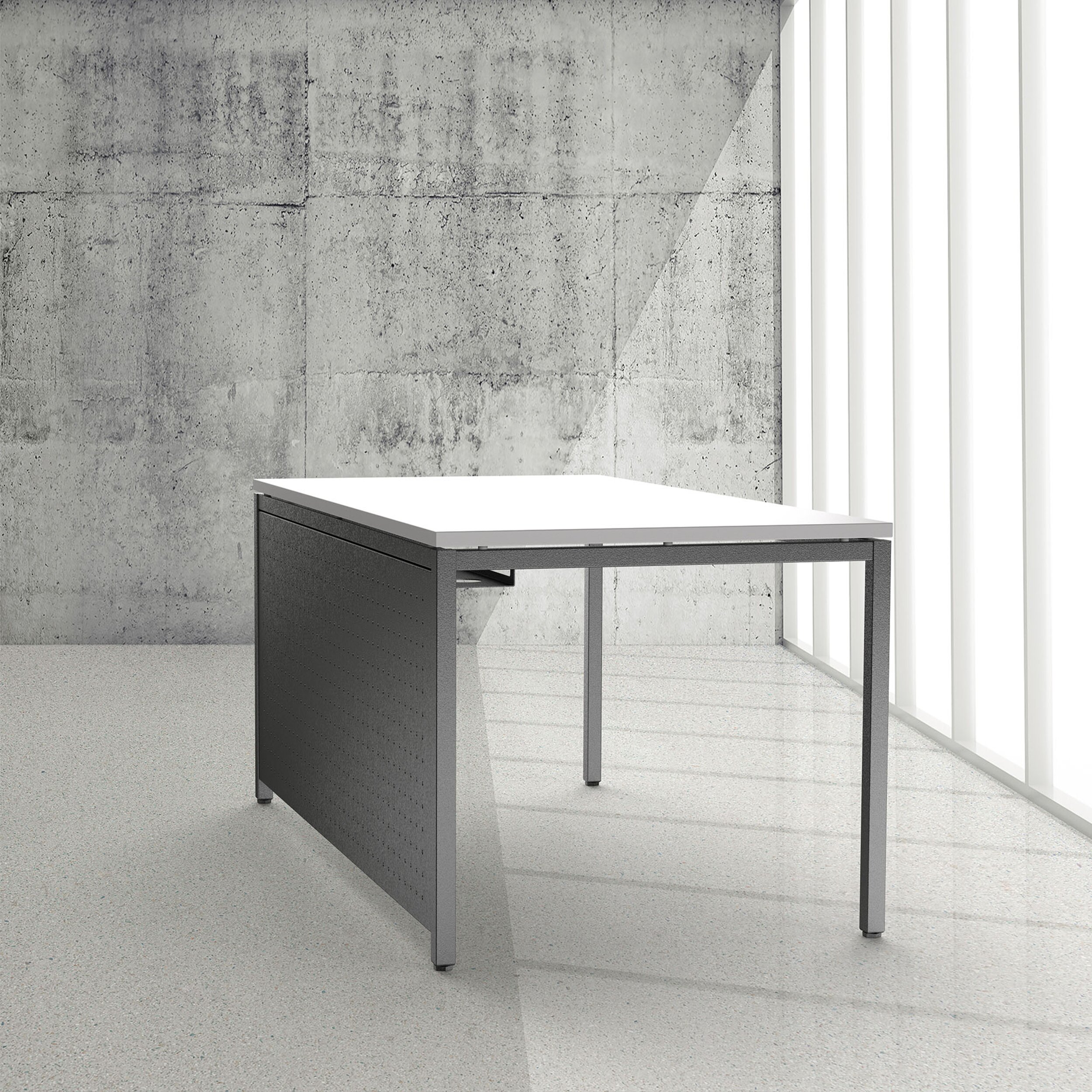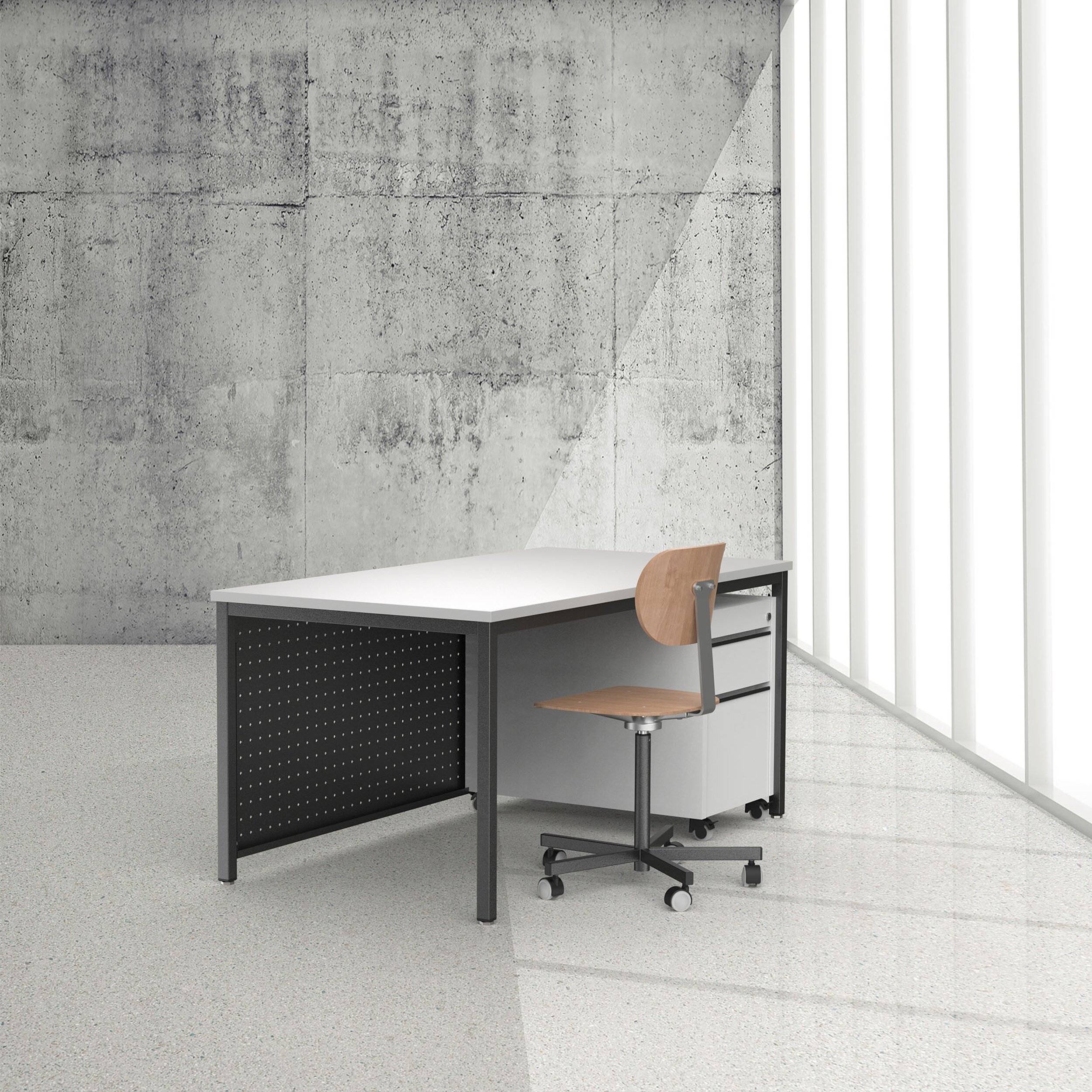 Klassischer 4-Fuss-Tisch mit Gestell aus Vierkantrohr, komplett verschweisst, pulverbeschichtet oder glanz-verzinkt. Material vom Tischblatt und Belag sowie die Kanten sind individuell wählbar. Multifunktionaler Ar-beitstisch für alle Bereiche einsetzbar. Füsse mit Nivelliergleitern. Ausführung in zahlreichen Standardgrössen oder auf Mass mit Kabelkanal. Beinraumblende aus Holz oder Lochblech.