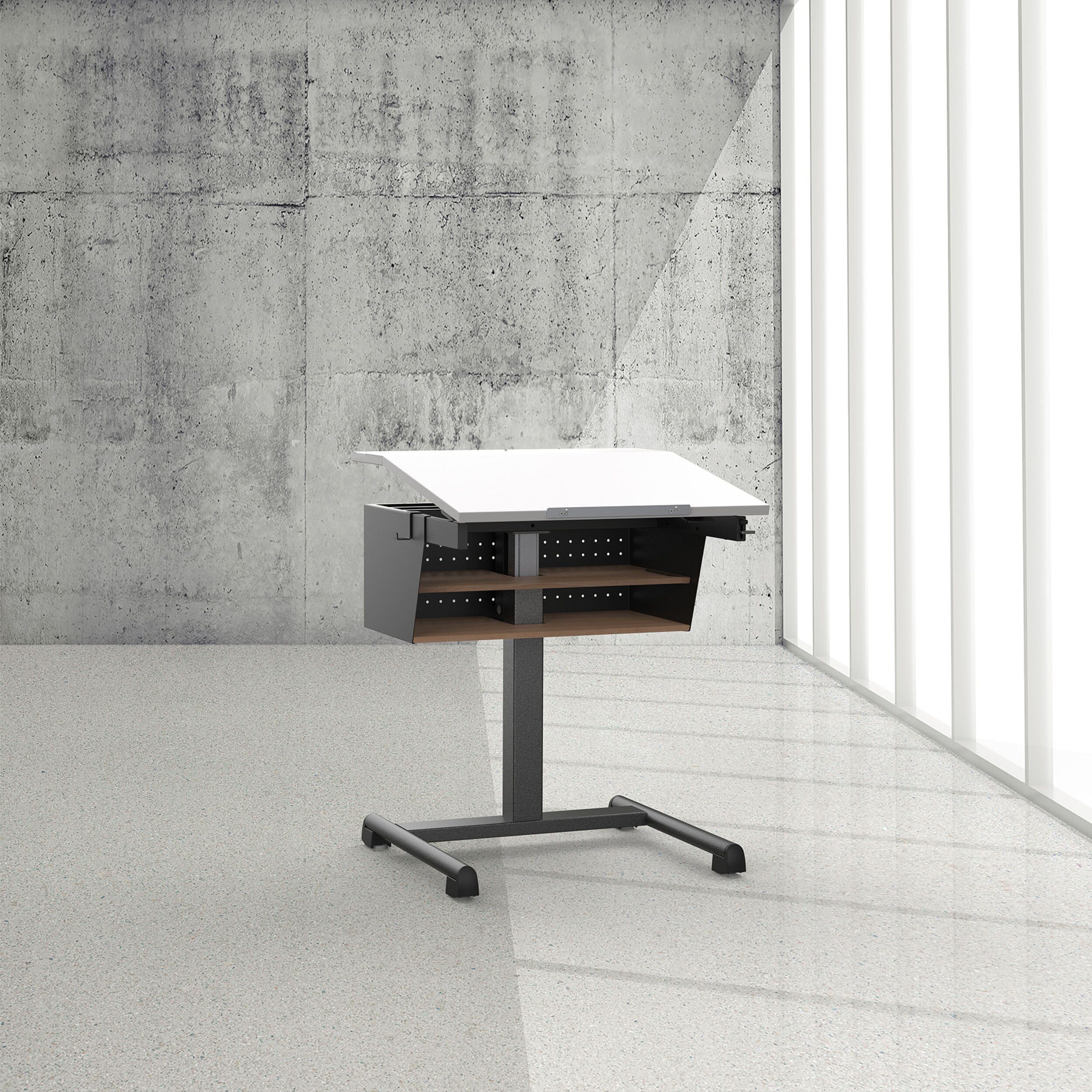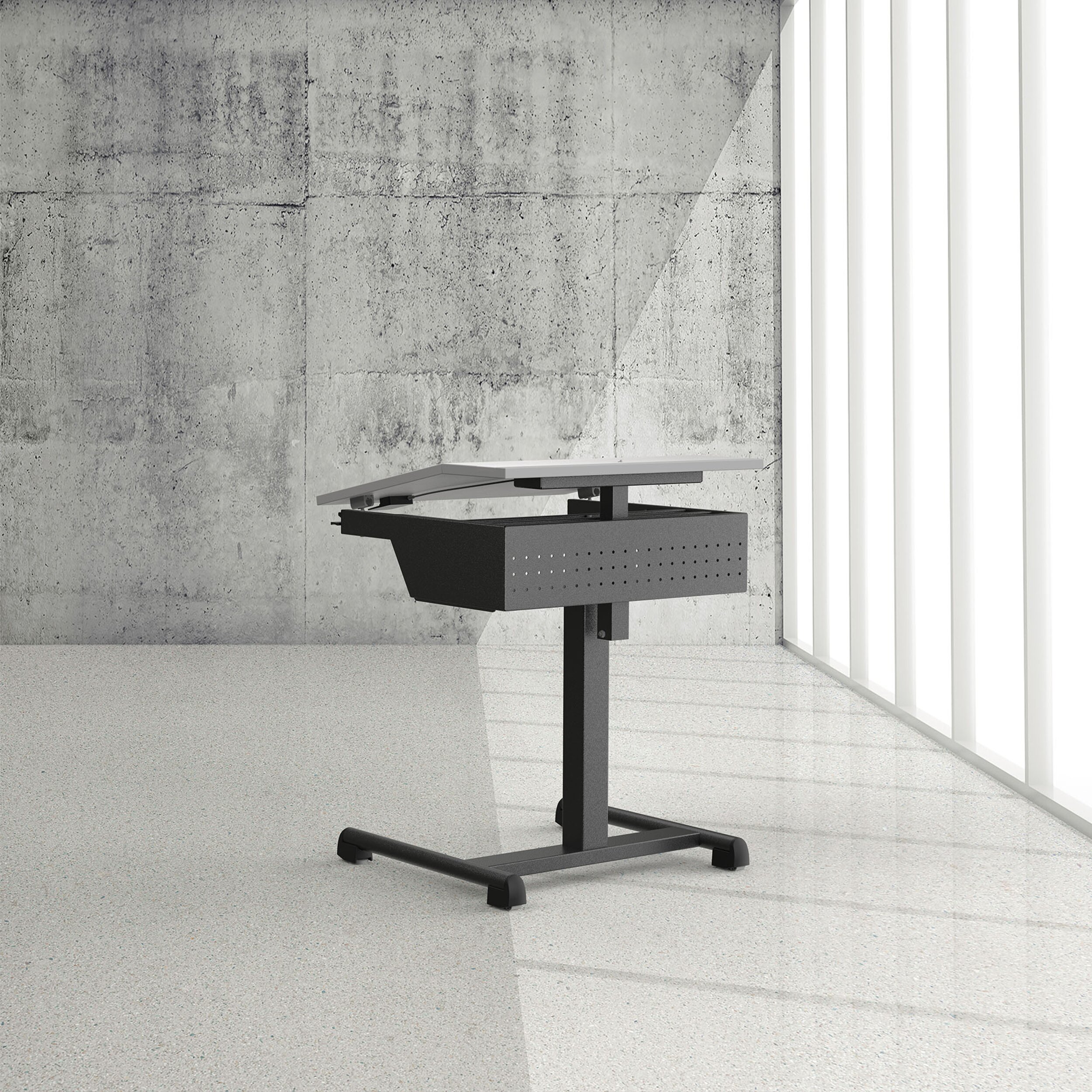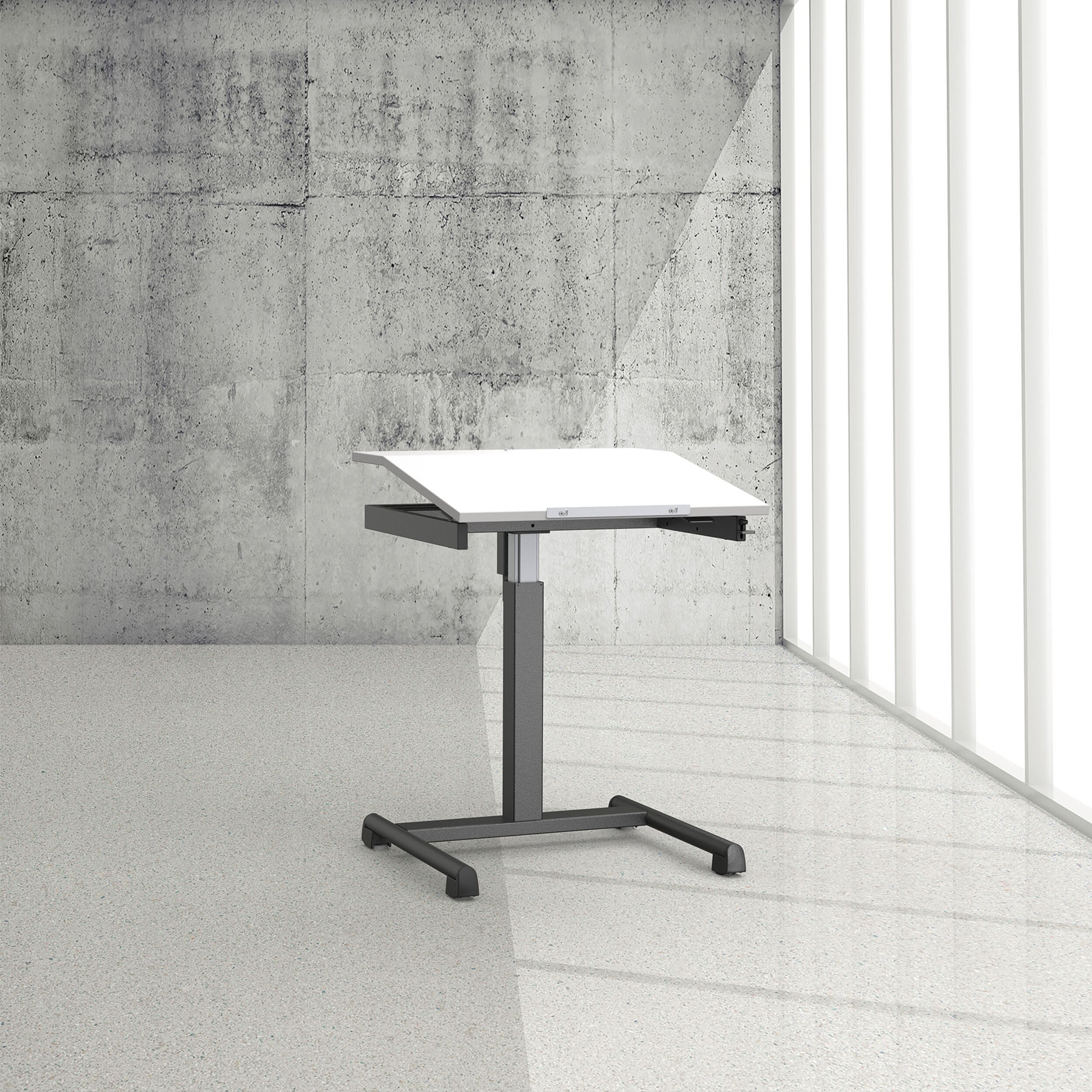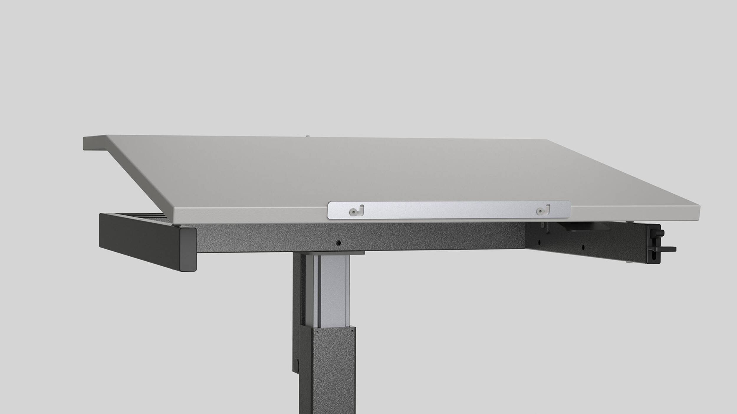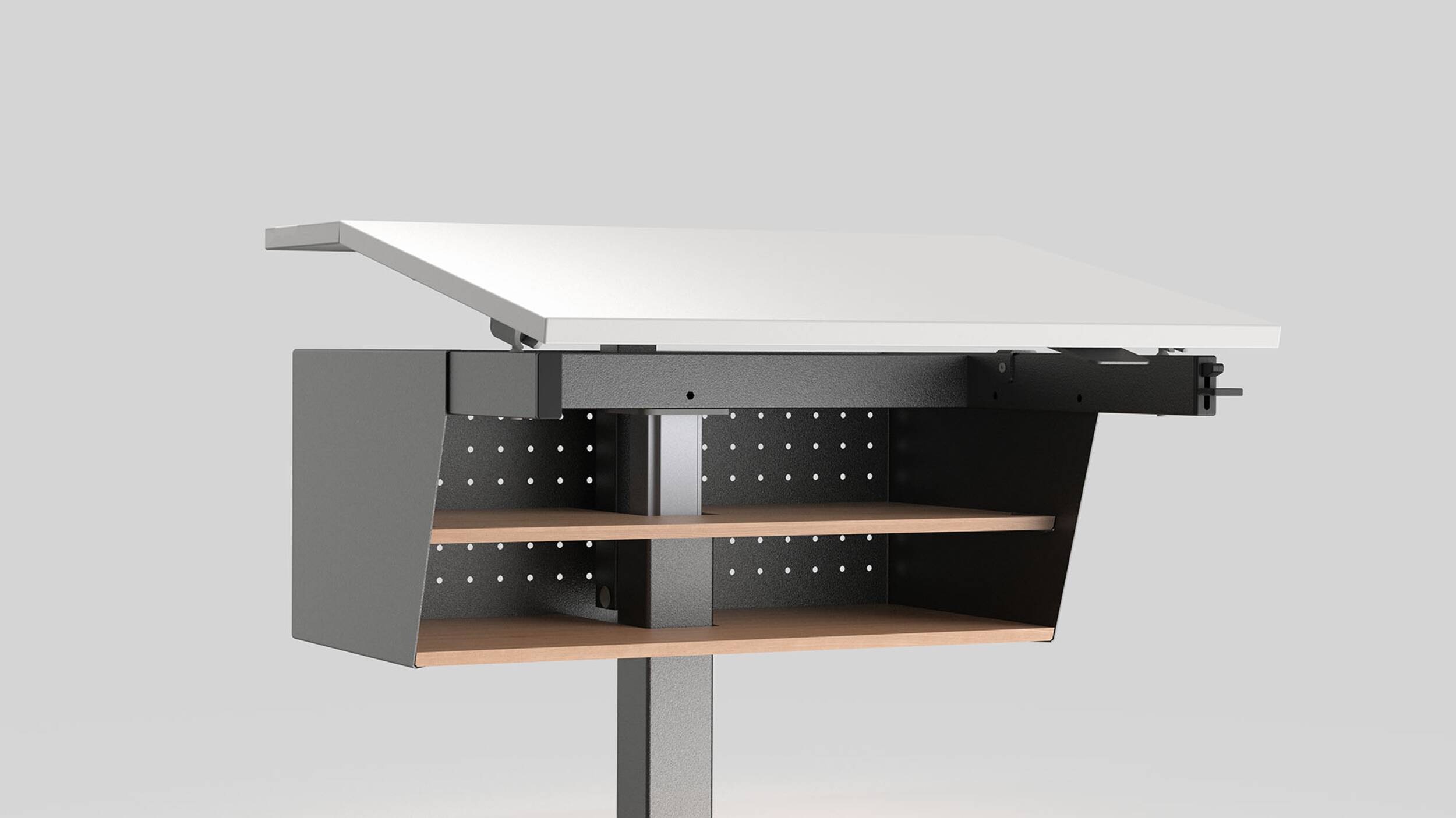 Tischblatt zweiteilig neigbar bis 16° mit Gaslift.