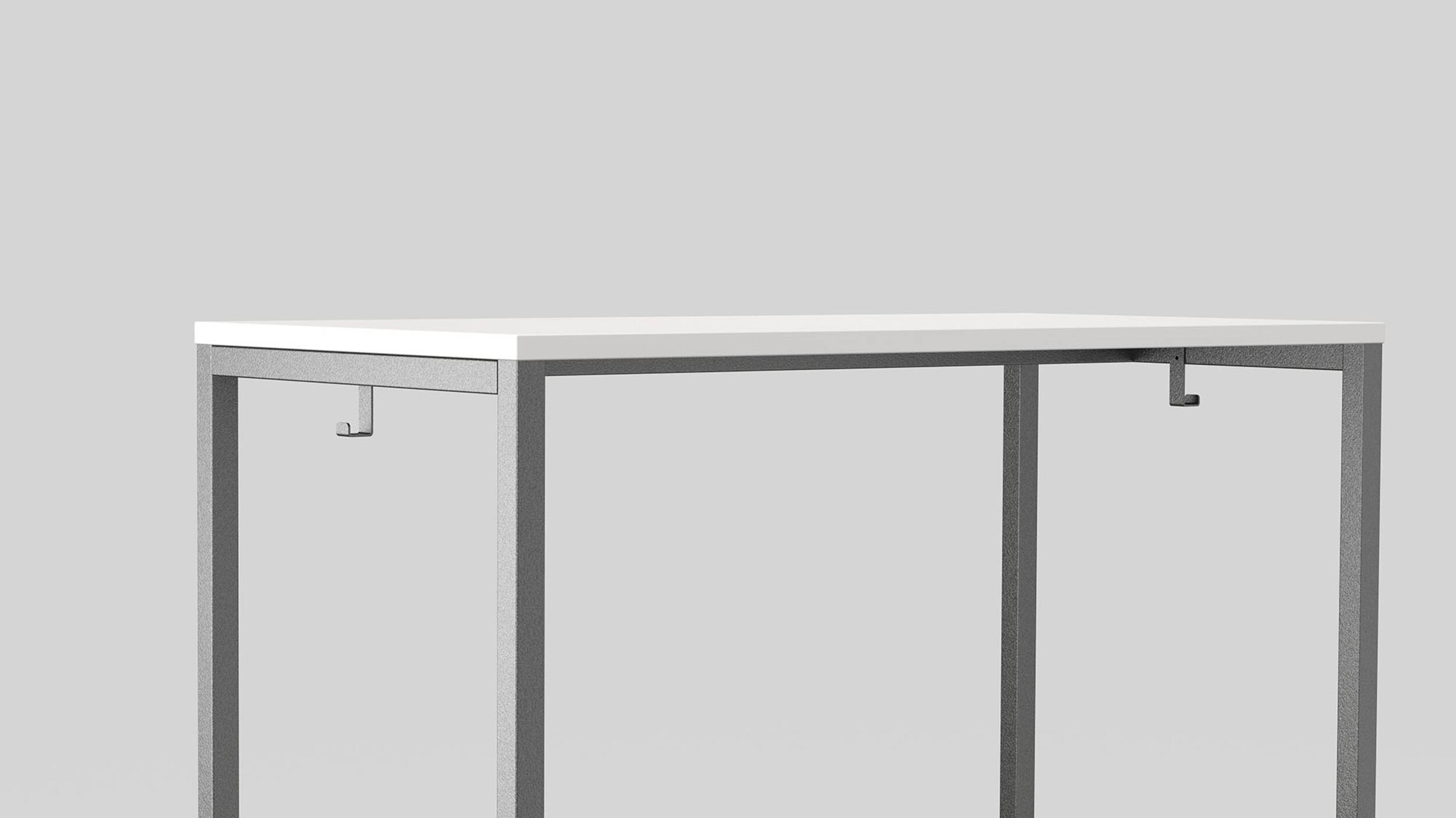 In zwei der vier Nivellierfüsse sind Rollen integriert. Der Quattro Tisch lässt sich so durch leichtes Anheben an der vorderen Tischkante einfach umplatzieren.