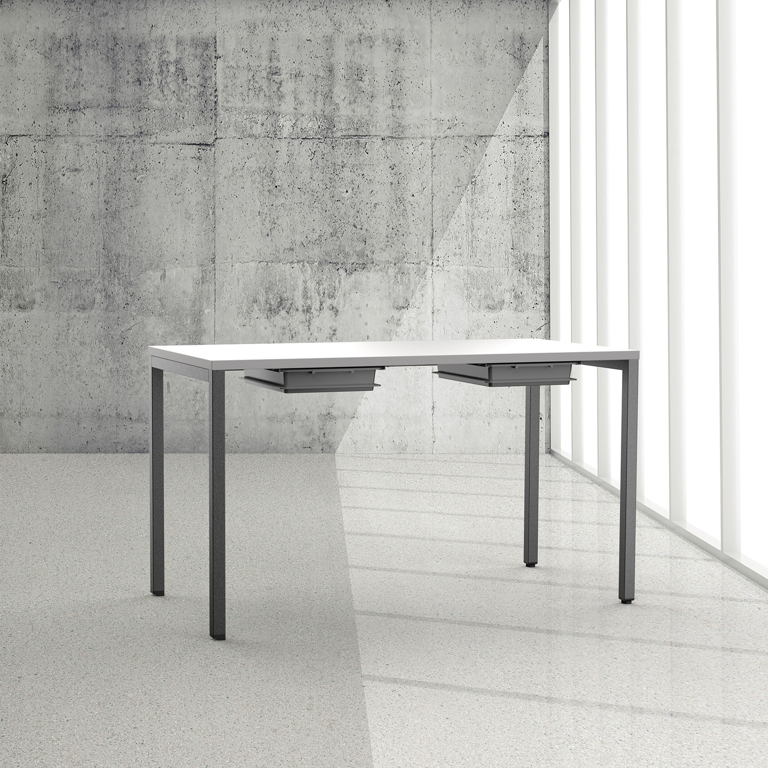 Die Tischkonstruktion besteht aus absolut verwindungs-steifem Präzisionsstahlrohr. Die Zarge schülerseitig ist zurückversetzt.
