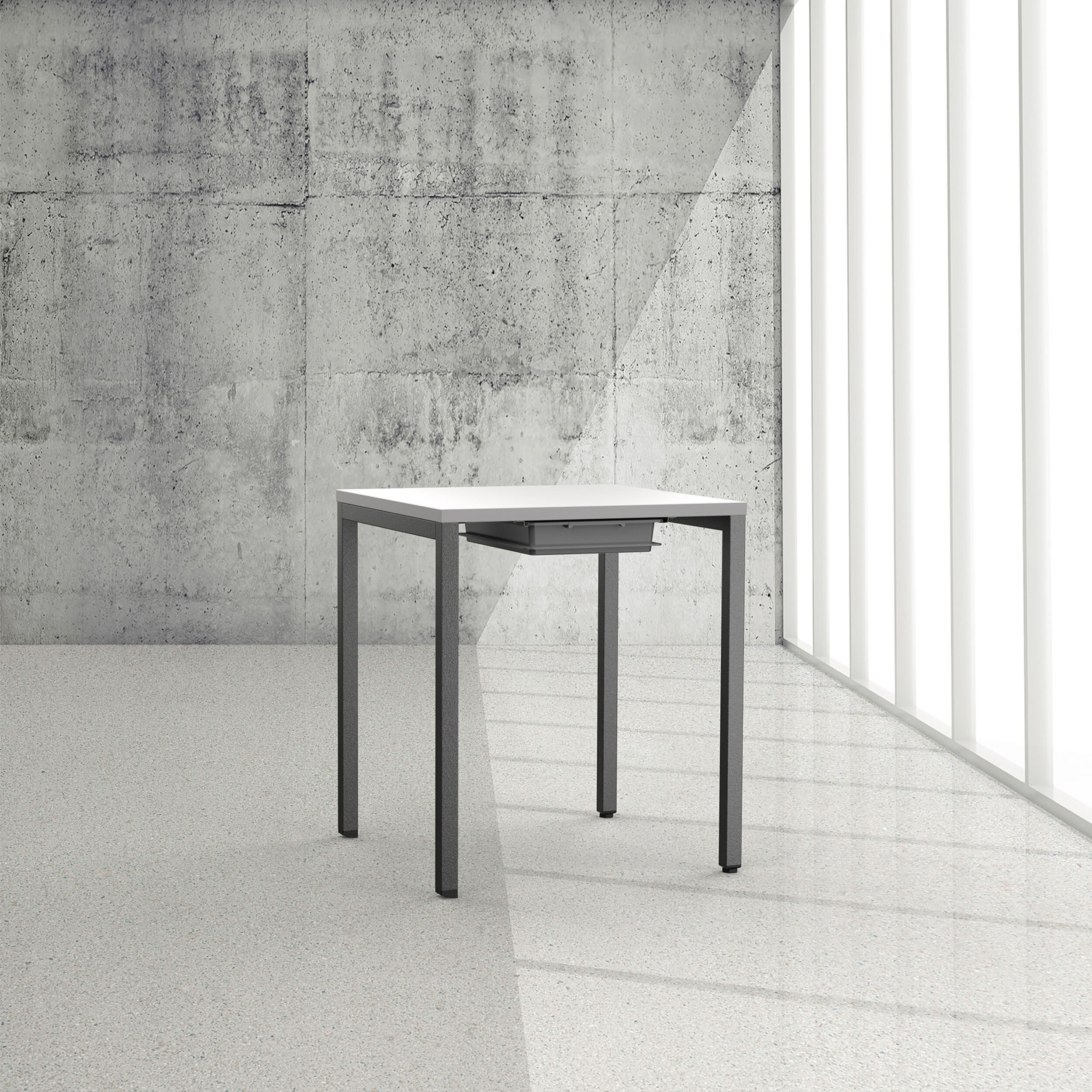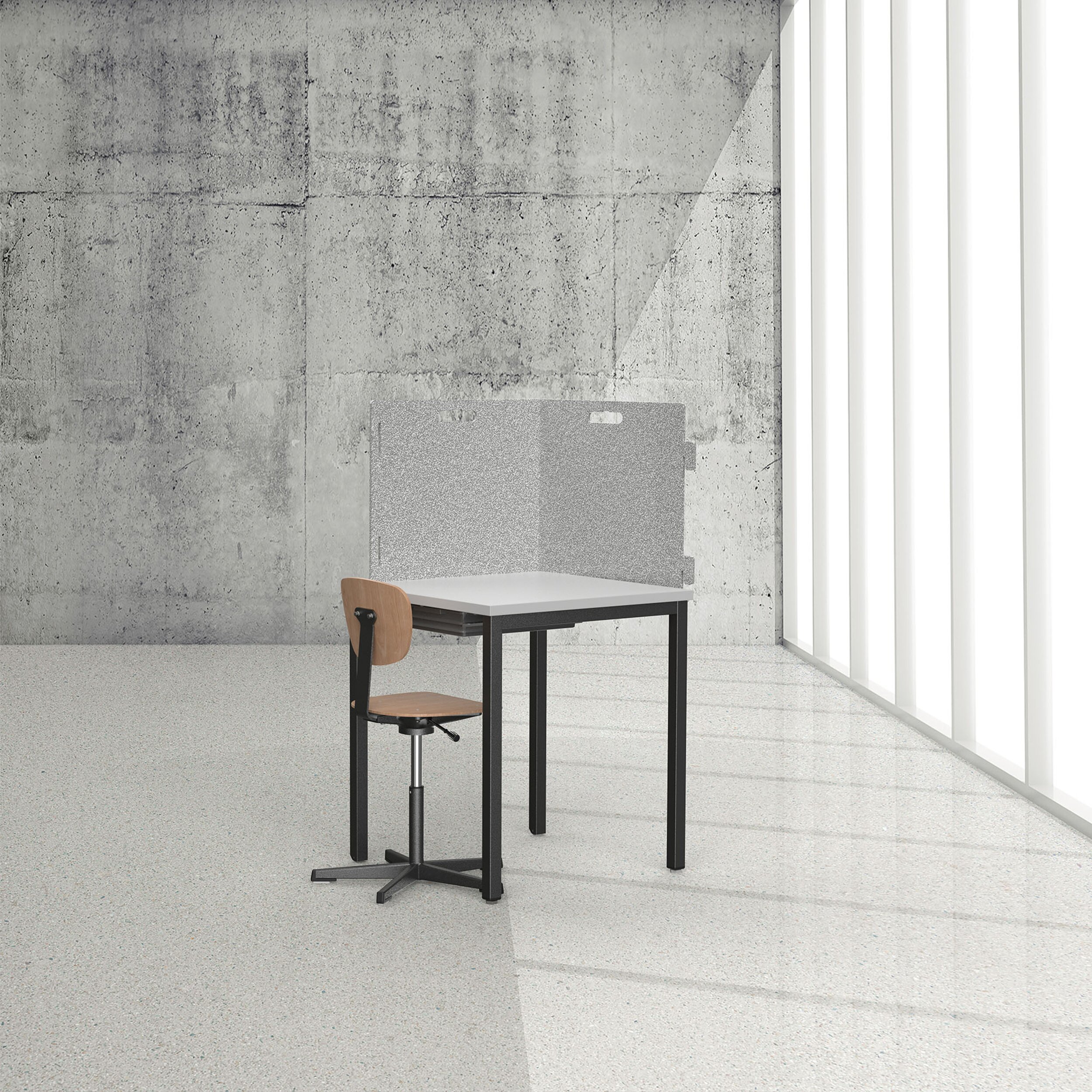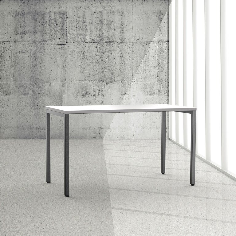 Klassischer 4-Fuss-Tisch mit Gestell aus Vierkantrohr, komplett verschweisst, pulverbeschichtet oder glanz-verzinkt. Material vom Tischblatt und Belag sowie die Kanten sind individuell wählbar. Multifunktionaler Arbeitstisch für alle Bereiche einsetzbar, insbesondere für Lernateliers. Füsse mit Nivelliergleitern.
