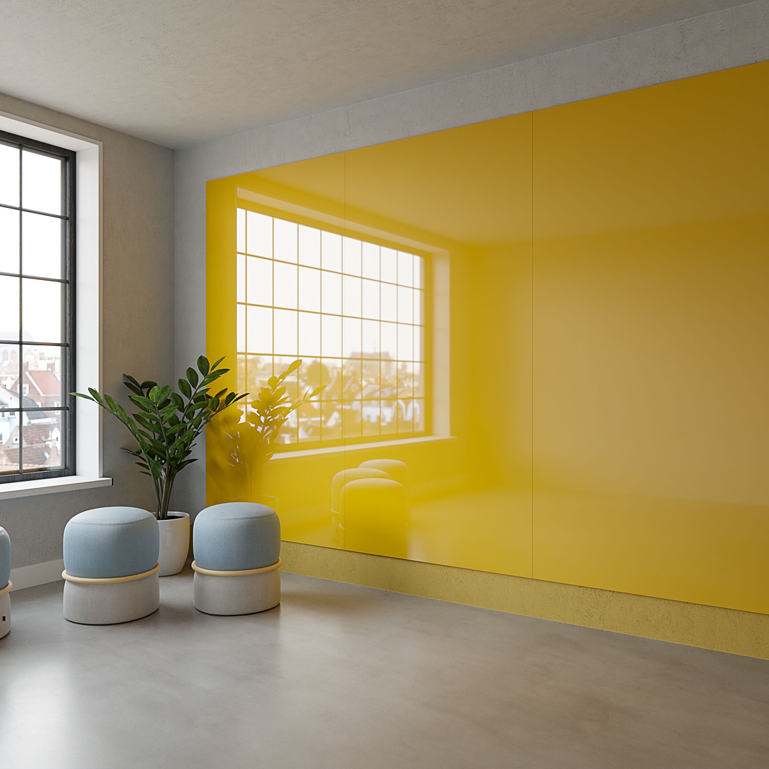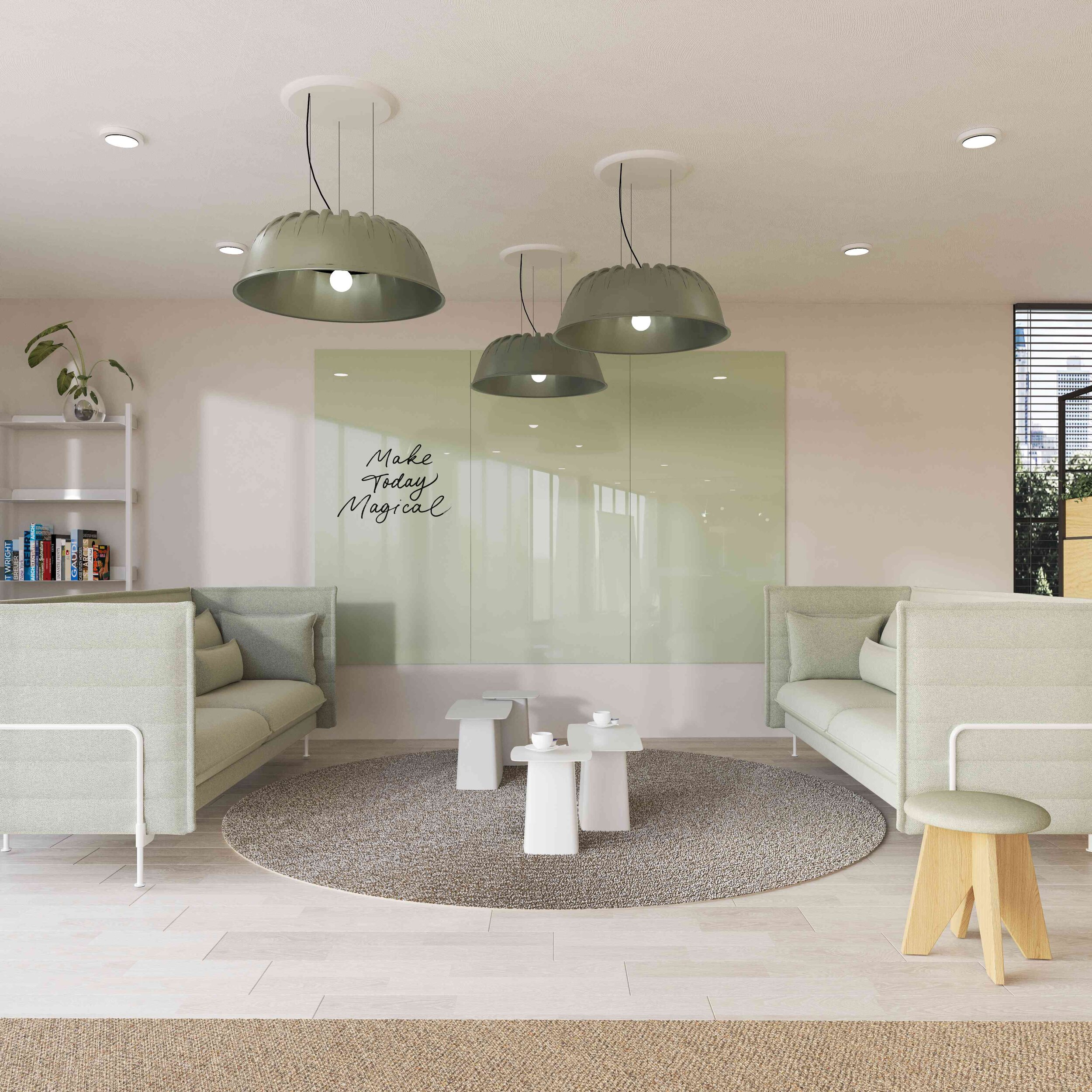 Farbgebung ist ein kraftvolles Mittel in der Innenraumgestaltung, da sie die Stimmung und das Ambiente eines Raumes stark beeinflusst. Warme Farben wie Rot, Orange und Gelb können eine gemütliche und lebhafte Atmosphäre schaffen, während kühle Farben wie Blau und Grün eine beruhigende Wirkung haben. Es ist auch möglich, dies mit den Produkten Sharp Acoustics zu kombinieren. Die 18 sanften Pastellfarben von Chameleon Sharp Glass Wall passen aufgrund ihrer Vielseitigkeit gut zu verschiedenen Stilen der Innenraumgestaltung.