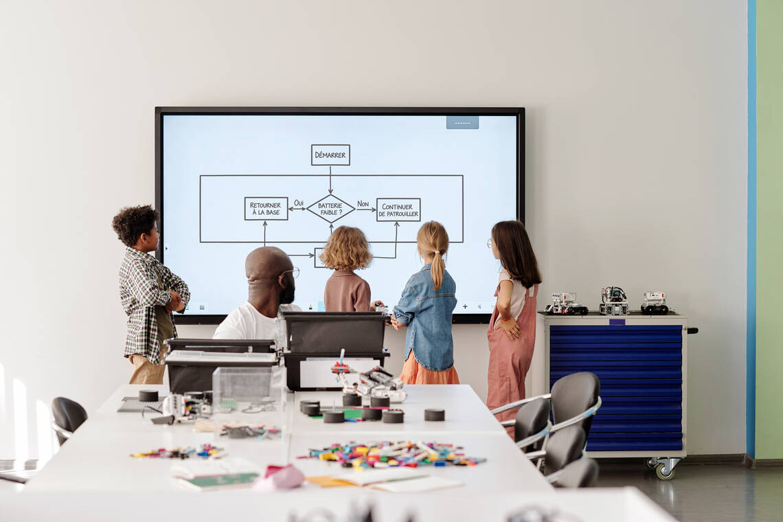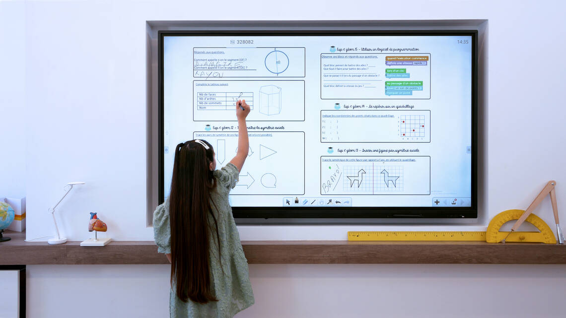 Texte lassen sich vergrössern, Bilder verschieben, Ideen sammeln. Kinder stehen auf,zeigen, erklären, probieren aus. Und plötzlich ist der Unterricht nicht mehr nur vorne ander Tafel, sondern mitten im Raum.
